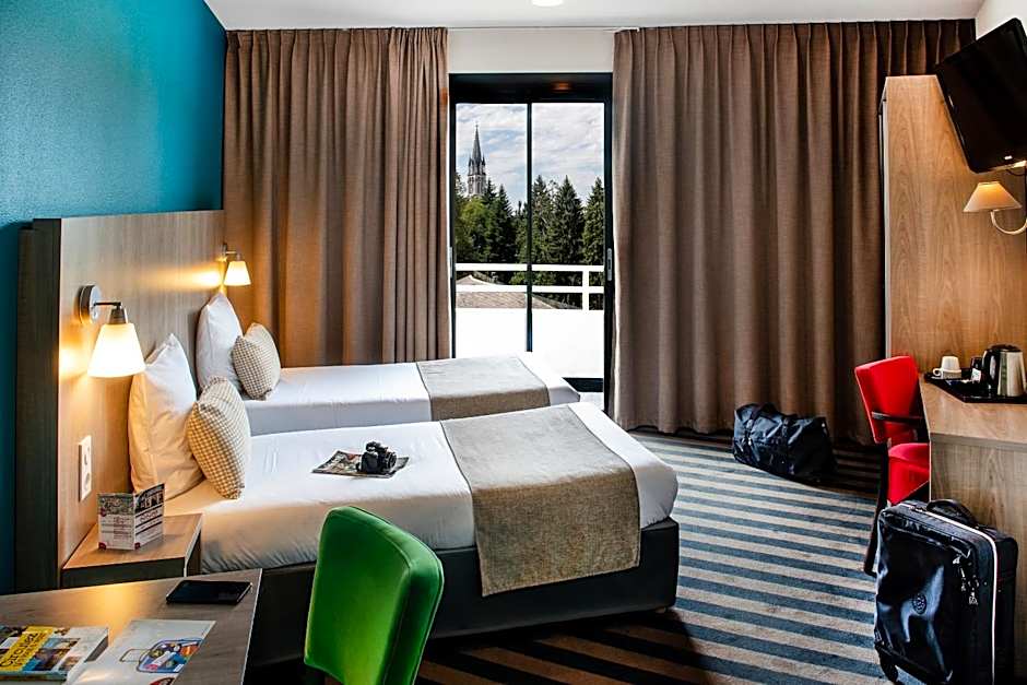 Les balcons offrent une vue sur un site emblématique, et les chambres insonorisées aident à se détendre après une journée de visites, faisant de cet établissement une base pratique et confortable à Lourdes pour les voyageurs recherchant flexibilité et facilité.